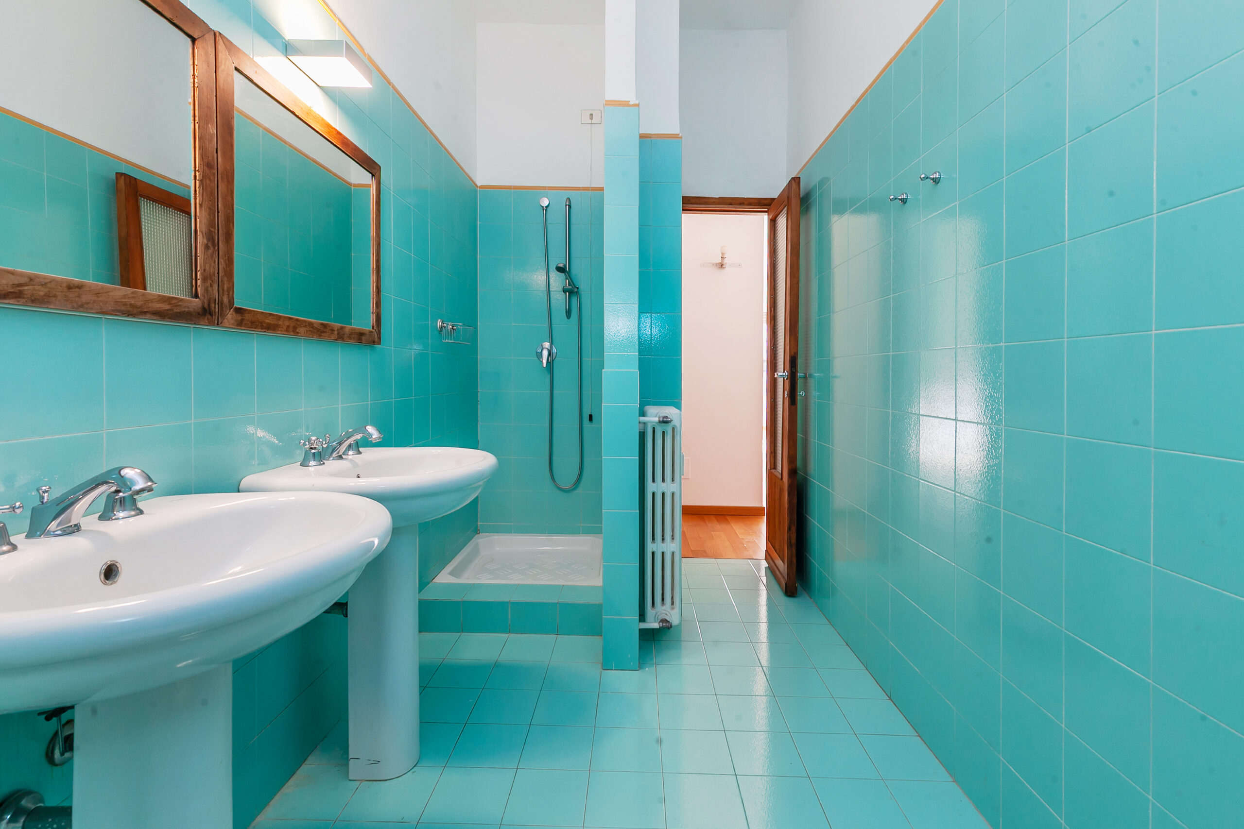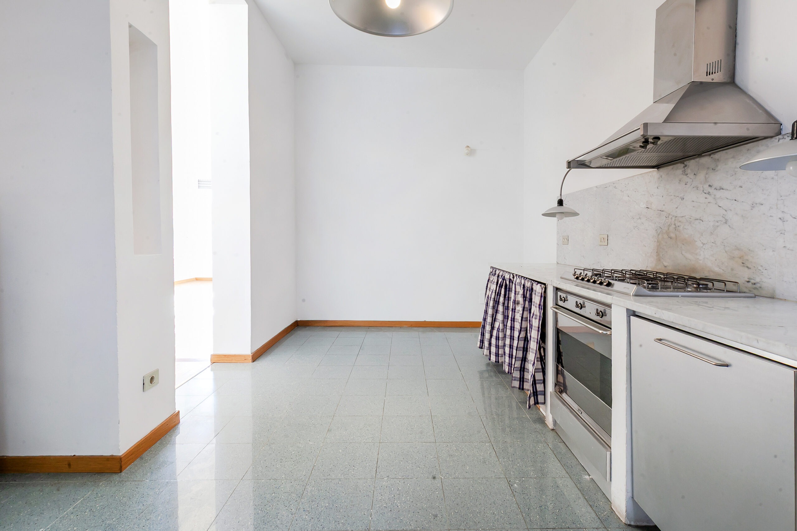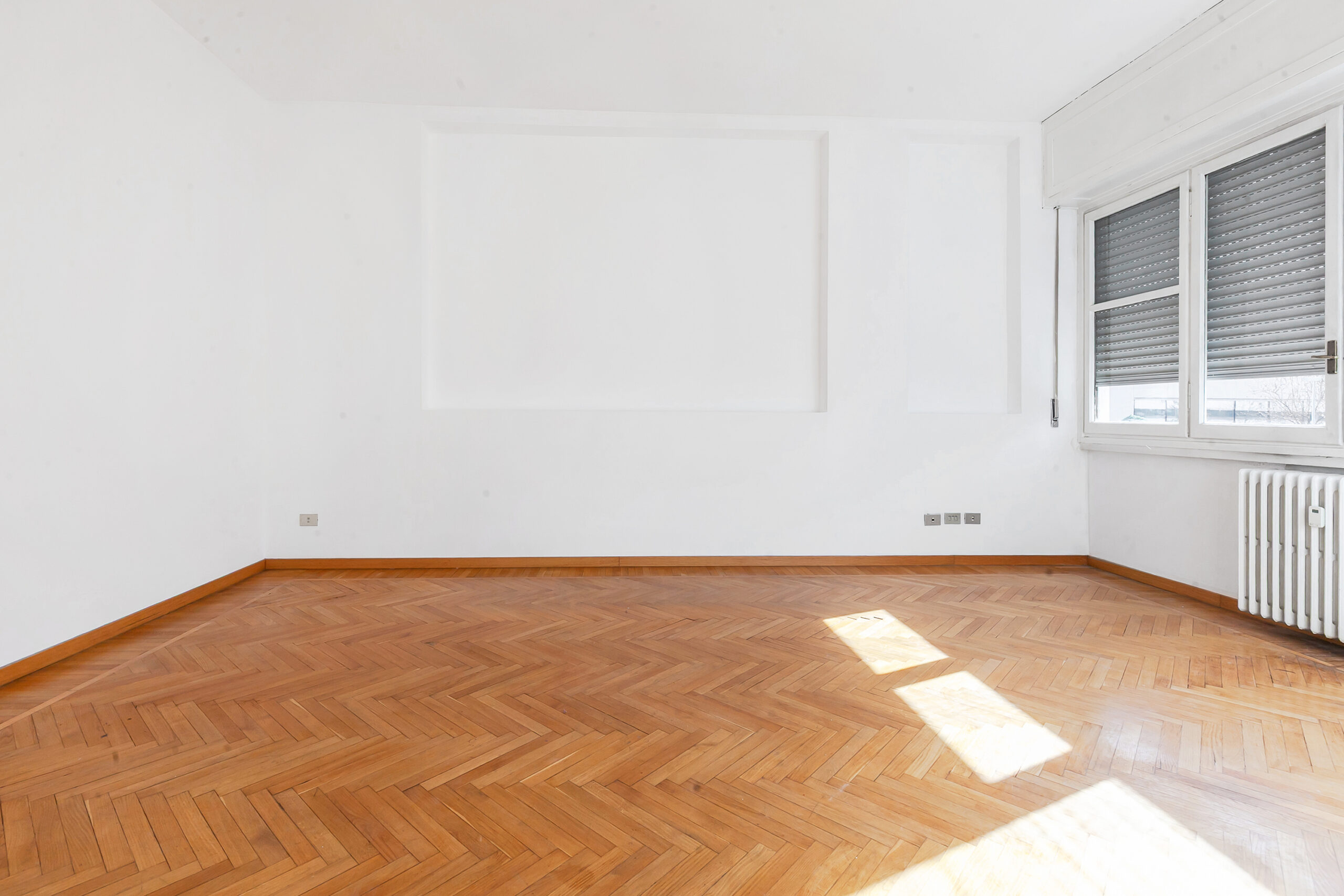 L’ingresso apre su un soggiorno doppio, ampio e arioso, valorizzato da grandi finestre e da una luminosità costante, favorita dall’esposizione e dalla bassa altezza degli edifici di fronte.