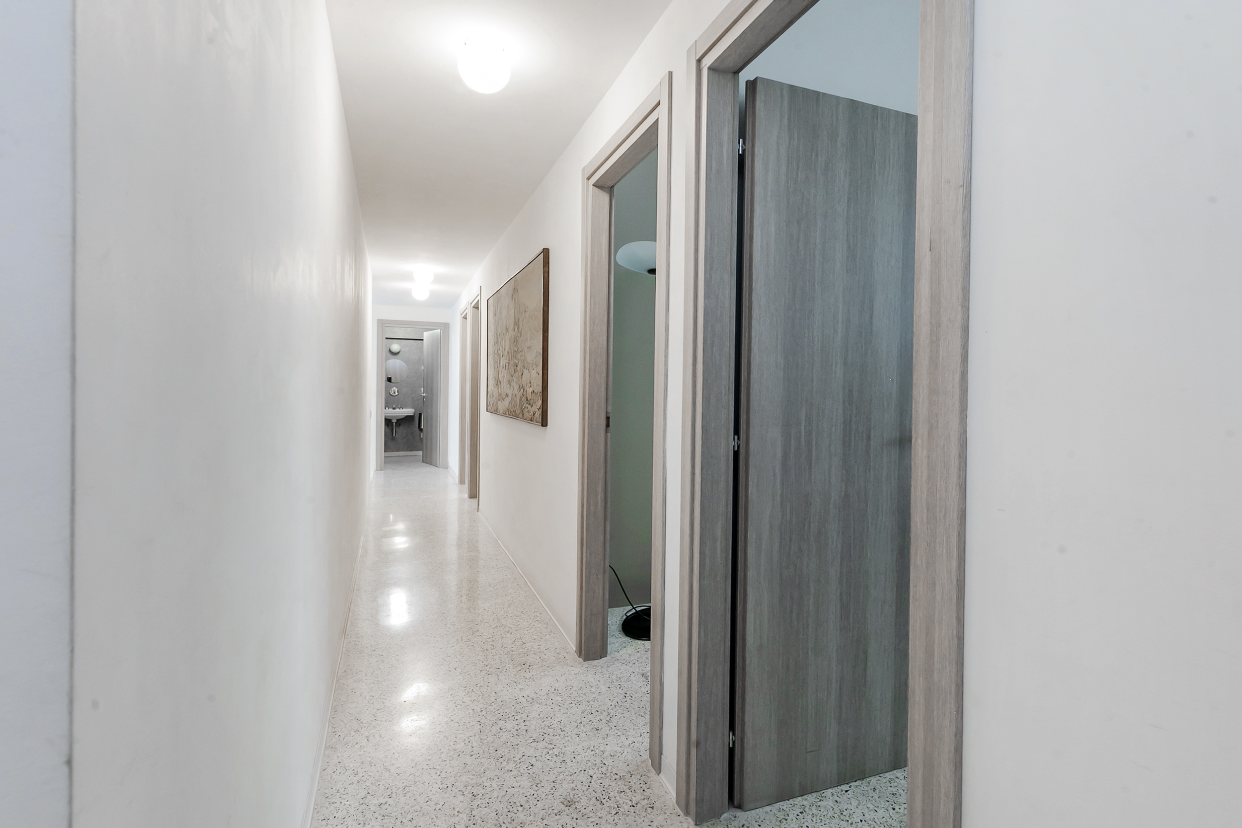 Gli spazi sono completati da due bagni, l’uno finestrato, dotati di grandi docce e di tutti i comfort necessari, e da un pratico ripostiglio.